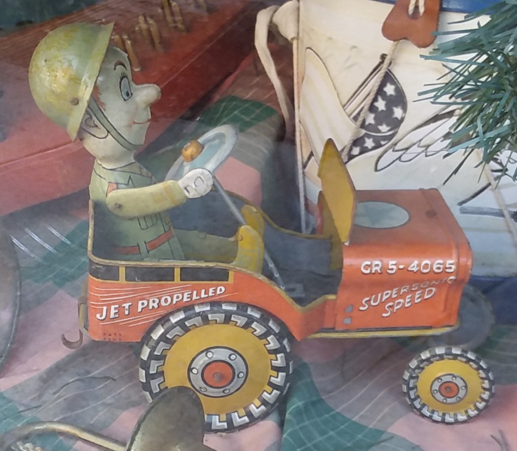 I am Jet Propelled. I am Supersonic Speed. Yet, I am stuck. Ironic. I have a specific identity, yet thousands pass, day by day, without notice of my predicament. I silently speak, yet no one hears. Everyone is in a hurry. It is not their fault, however. My time was seventy-five years ago. My identity is not recognized as much as it would have been back then and my usefulness has long since passed. Even my recognition as an antique/collectible is waning as those who remember me as the mighty G.I. Joe are slowly passing into eternal rest. Year after year.