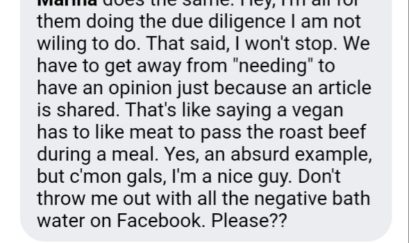 🤔What else? Fighting on Facebook with a friend over stupid sh*t. Well, ain’t that just something to be expected? She was upset that I, …wait for it … posted up an article without attaching an opinion to it either way. I must have an opinion, she opined, and railed me for not sourcing the article. I likened it to, well, here’s part of the reply: