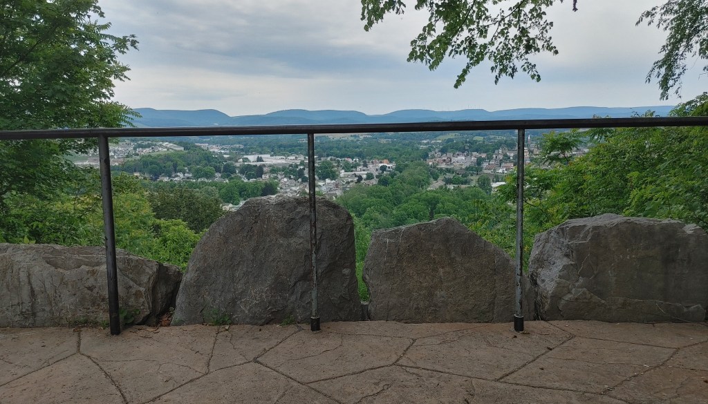 Where the park is now was then a sanctuary for small critters we heard, but never saw. Many a teen trod over soil and stones since removed from the very area I sat the other day. Looking back – off to my right – large, deep drill marks could be seen against the hill face exposed by deep cuts in the earth. Cut away like a slice of the moon were centuries of hidden rocks, memories, and footprints of young teenagers brave enough to scale a Hollidaysburg hill.