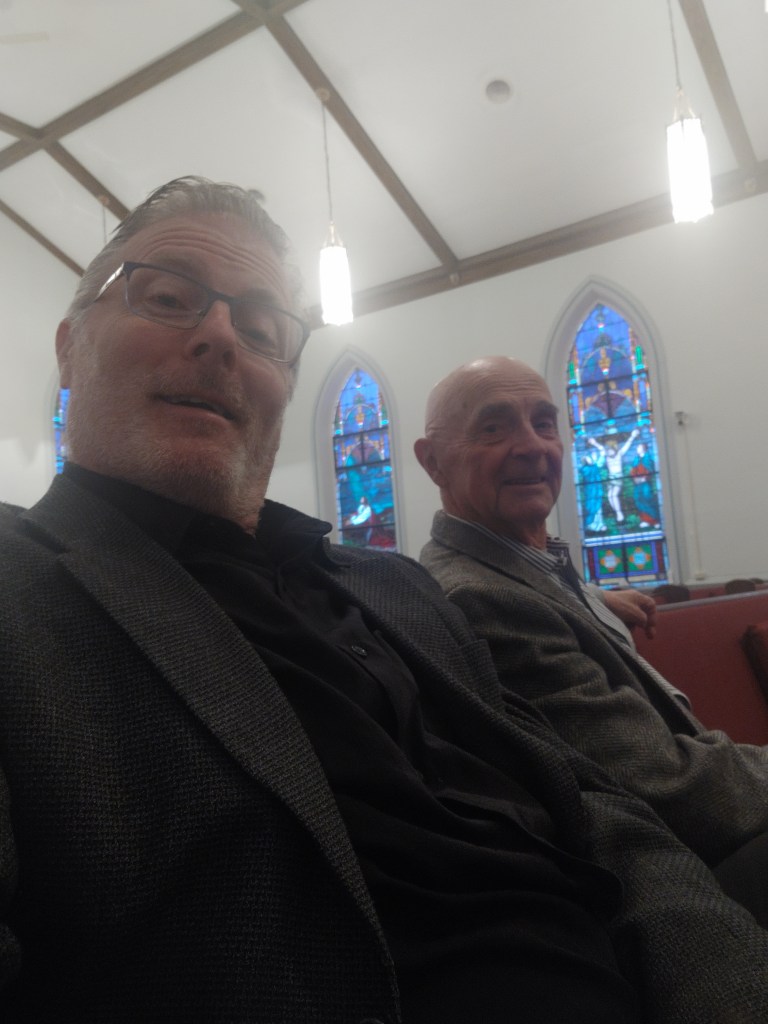After all was done, dad found his way forward to the front pew. Something unique caught my morning, still awakening, eyes. Unknowingly, he and I nicely connected our attired tastes. Matching black dress pants and decorative gray blazers adorned our generationally partitioned selves.